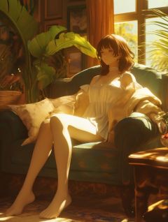 妈妈抱着弟弟坐在沙发上,小心翼翼地掀开襁褓一角,轻轻碰了碰弟弟的脸颊。